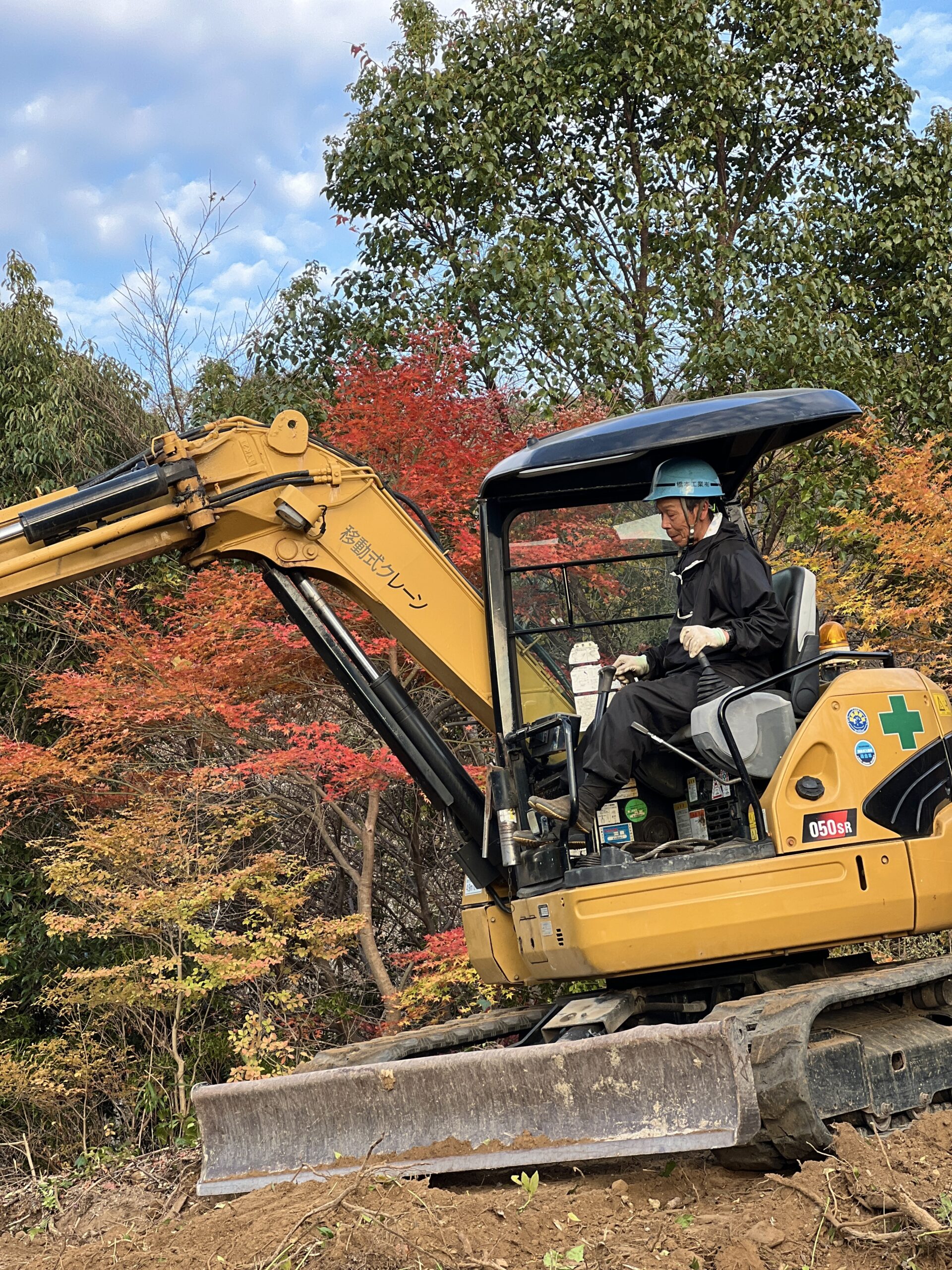 「この現場はええなぁ・・静かで」 ひとりがそうつぶやくと同僚が 言葉ではなく うなずく仕草で同意をあらわします。 ユンボの背後には紅く色づいたもみじ どこからともなく鳥の声が聞こえてきました。 北川村モネの庭マルモッタン…