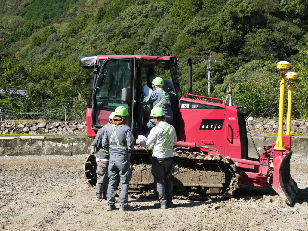 もし、**「今いる場所の土が、完成形より5センチ高い!」とわかれば、重機は自動でブレードの角度を変えて、「あと5センチ削ってね!」**と自分で調整しながら作業を進めます。