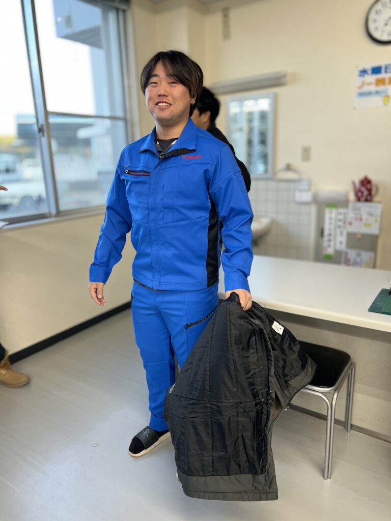 すっごく似合ってませんか!?✨ 鮮やかなブルーが、現場の雰囲気にもバッチリ合ってますよね!これを着て作業している姿を見たら、絶対カッコいいと思います!
