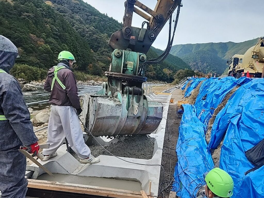 - 超精密!生コンの打設:バケットがゆっくり開いたり閉じたりできるから、生コンクリートや砕石を、まるで手で流し込むみたいに、正確に必要な場所に打ち込むことができるんです!