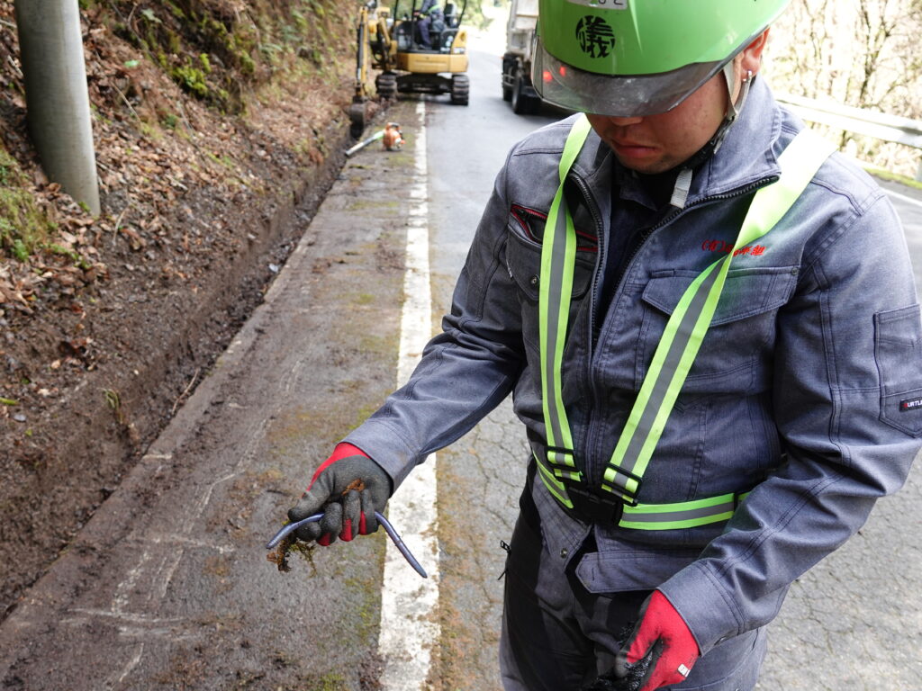さてさて、礒部組の年度末はというと……「国道493号道路維持委託業務」として、2チームに分かれ国道493号の側溝清掃に勤しんでおりました!💪
