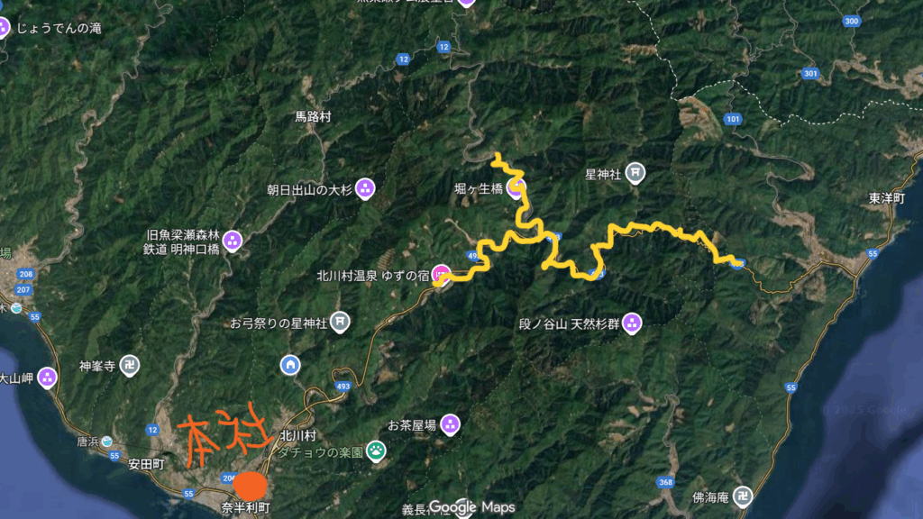 上の画像の黄色ラインがわが社の受け持ち区間です。