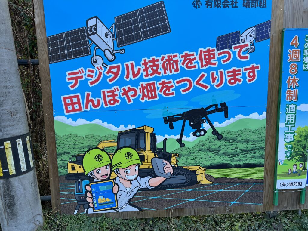 ICTをフル活用したほ場整備工事を地域の人たちにアピールしています。