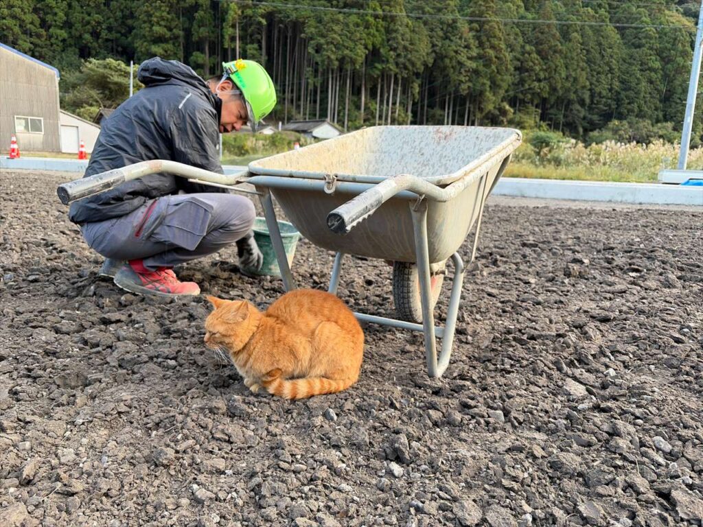 数日間にわたって現場に遊びにきていた茶色のキジトラです。