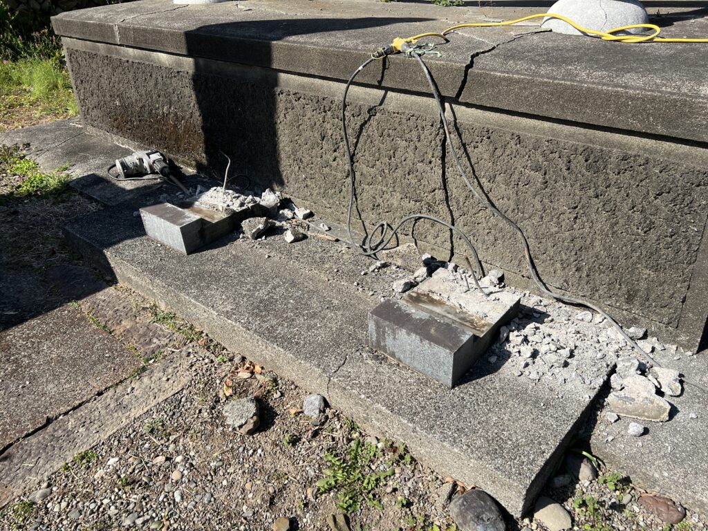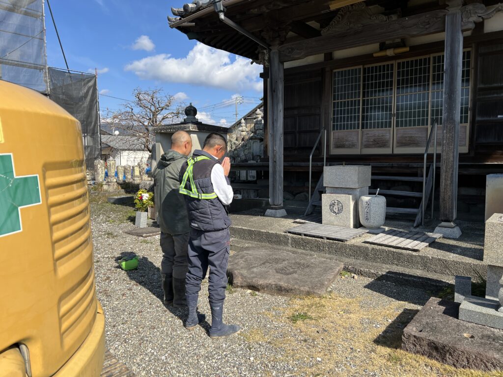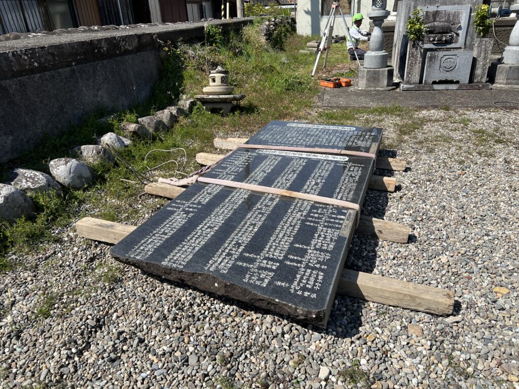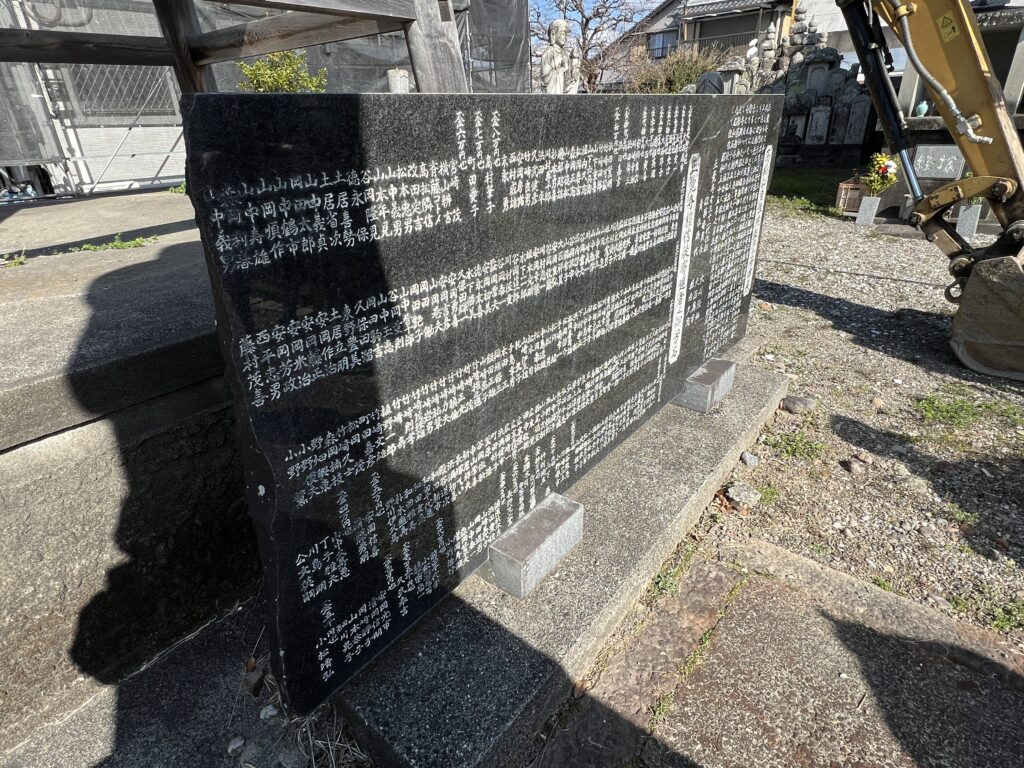 作業に支障となる鐘楼堂脇にある石碑を移転します。