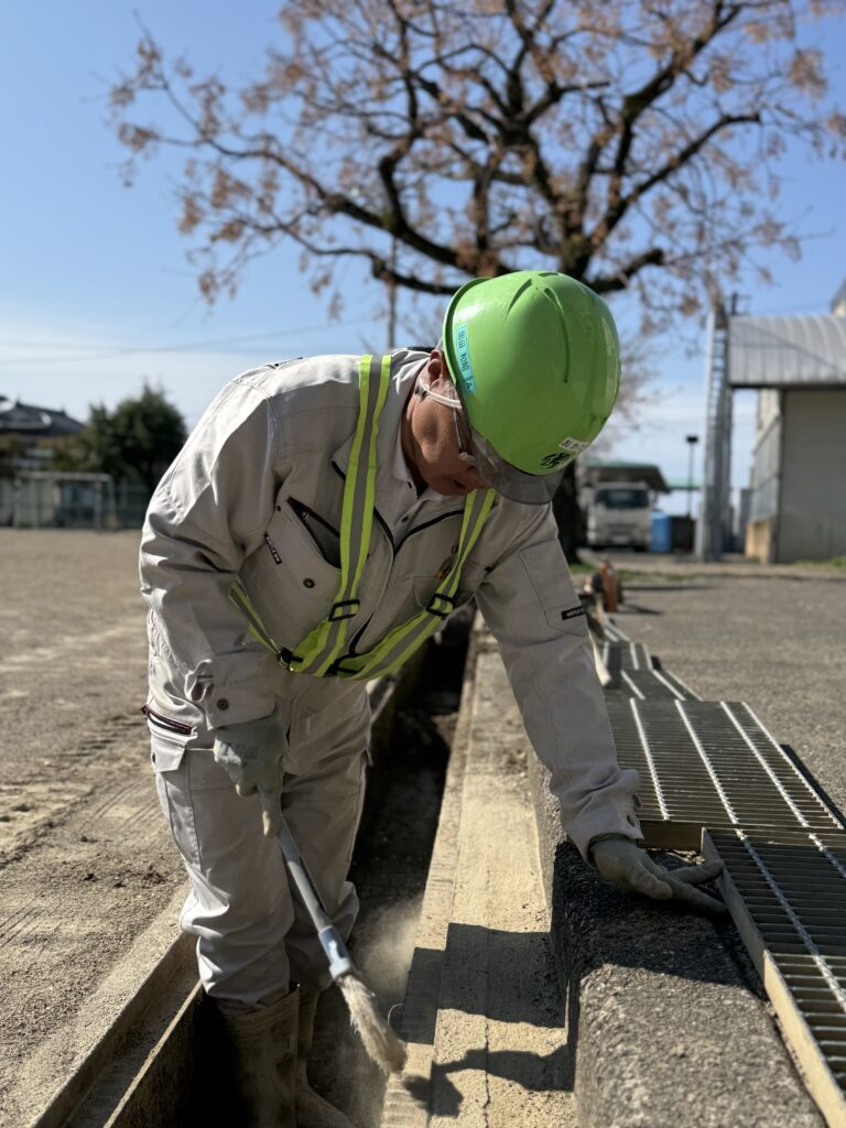 一口に「溝掃除」といっても、中に溜まった泥や落ち葉を教職員の皆さんや保護者の方が手作業でかき出すとなると、本当に重労働で大変な作業なんです💦