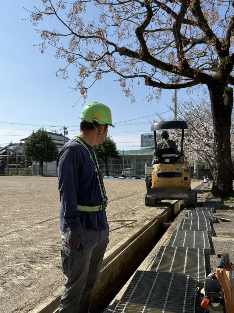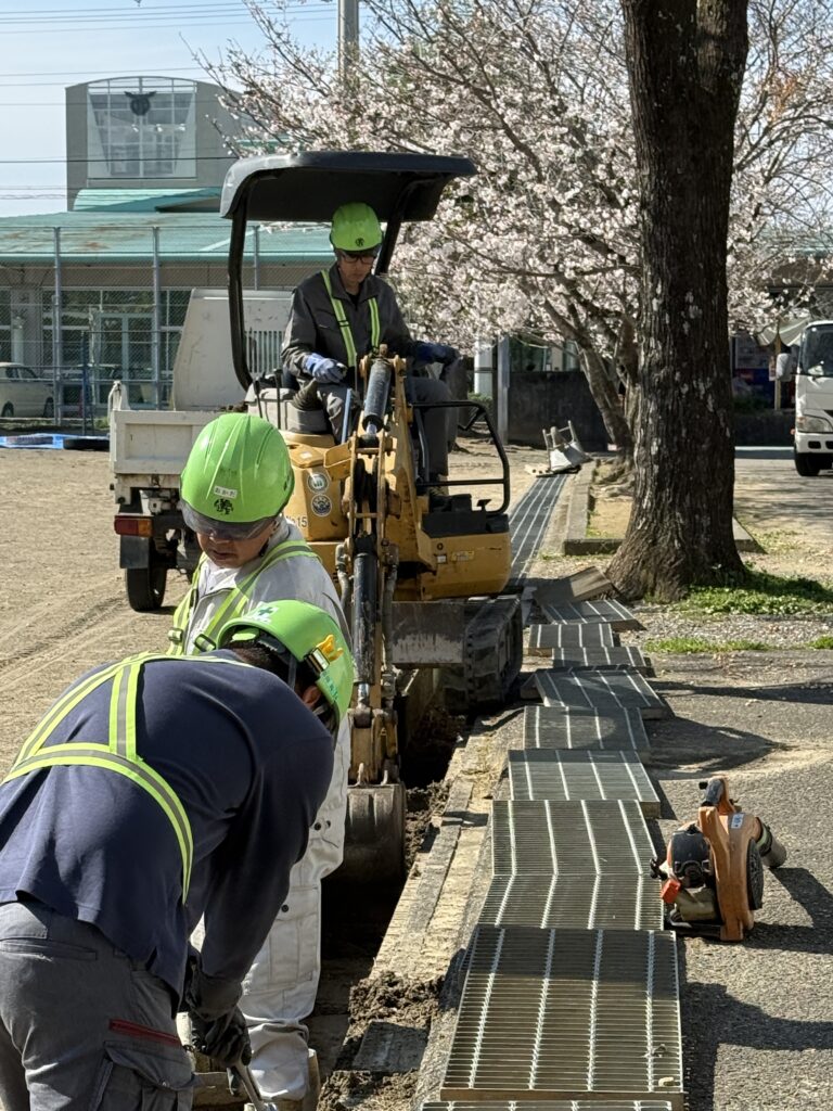 作業が終了し、溝もすっかり綺麗になりました! 子供たちが元気に、そして安全に学校生活を送るための「フィールドのアップデート」、バッチリ完了です!🫡